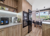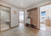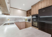 Byt pozostáva zo vstupnej chodby, kuchyne spojenej s obývacou izbou, spálne, detskej izby a murovanej kúpeľne s WC. Kuchyňa s obývačkou je oddelená od ostatných miestností posuvnými dverami. K bytu prislúcha aj pivnica a kumbál, čo spolu tvorí rozlohu 71 m2. Veľká 6m loggia je takisto súčasťou bytu.