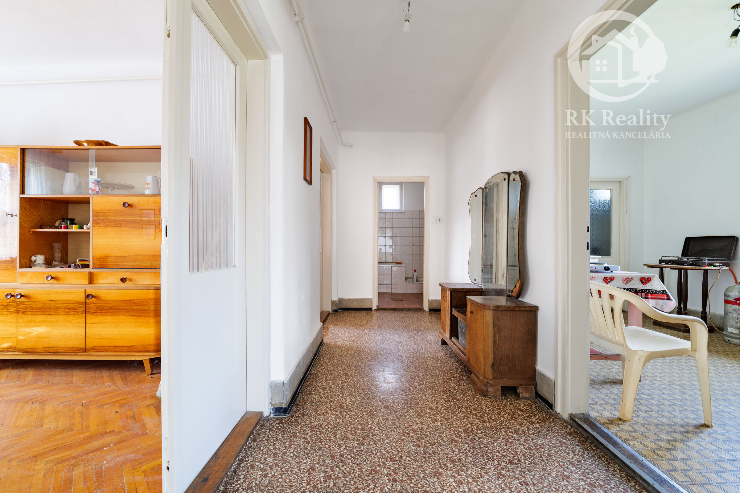 Dispozične dom pozostáva z predsiene, chodby, dvoch izieb, kuchyne s jedálňou, kúpeľne s toaletou a komory. Dom je podpivničený, čo poskytuje dodatočný úložný alebo technický priestor. Veľkorysý pozemok ponúka široké možnosti využitia - či už na záhradu, hospodárenie alebo oddychovú zónu.